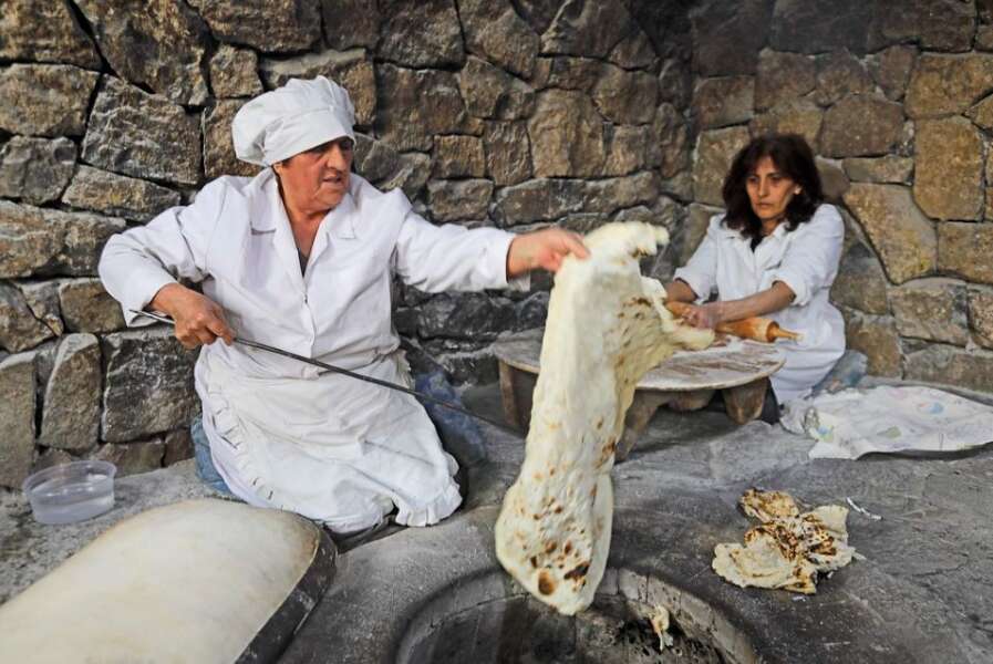 Les petits verres de vodka ou de brandy local précèderont, accompagneront ou termineront les plats locaux, mélanges d’Asie et d’Occident. Lesquels sont souvent servis avec les vins du cru. Voici les khorovats (grillades et salades), les dolmas (légumes farcis par toutes sortes de viandes), le Lahmajoun (pizza arménienne)… Sans oublier le lavash, ce pain traditionnel cuit au four, dont on peut souvent admirer la fabrication ancestrale. Mais s’il y a bien une nourriture plus spirituelle qui séduira le visiteur… c’est le plaisir d’écouter résonner l’âme et l’esprit de ce petit pays : la musique envoûtante du doudouk, ce haut-bois ancestral bercé de nostalgie qui transporte au paradis au-delà du mont Ararat.