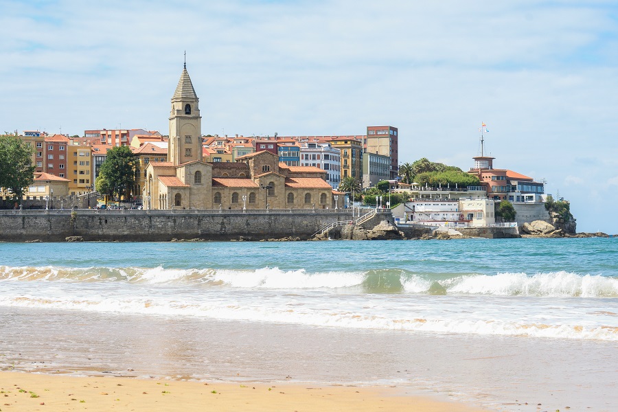 A l’est de la presqu’île s’étend la promenade de front de mer. Balade favorite des habitants, elle longe depuis les termes romains del Campo Valdes la longue plage de San Lorenzo, où les locaux ont l’habitude de se donner rendez-vous à l’un des escaleras (escaliers) numérotés qui dévalent vers le sable blond… Côté ouest, Gijón se déploie autour de son port de pêche et de plaisance. Face aux bateaux, la place del Marques est dominée par le remarquable palais baroque de Revillagigedo (XVIIème s.).